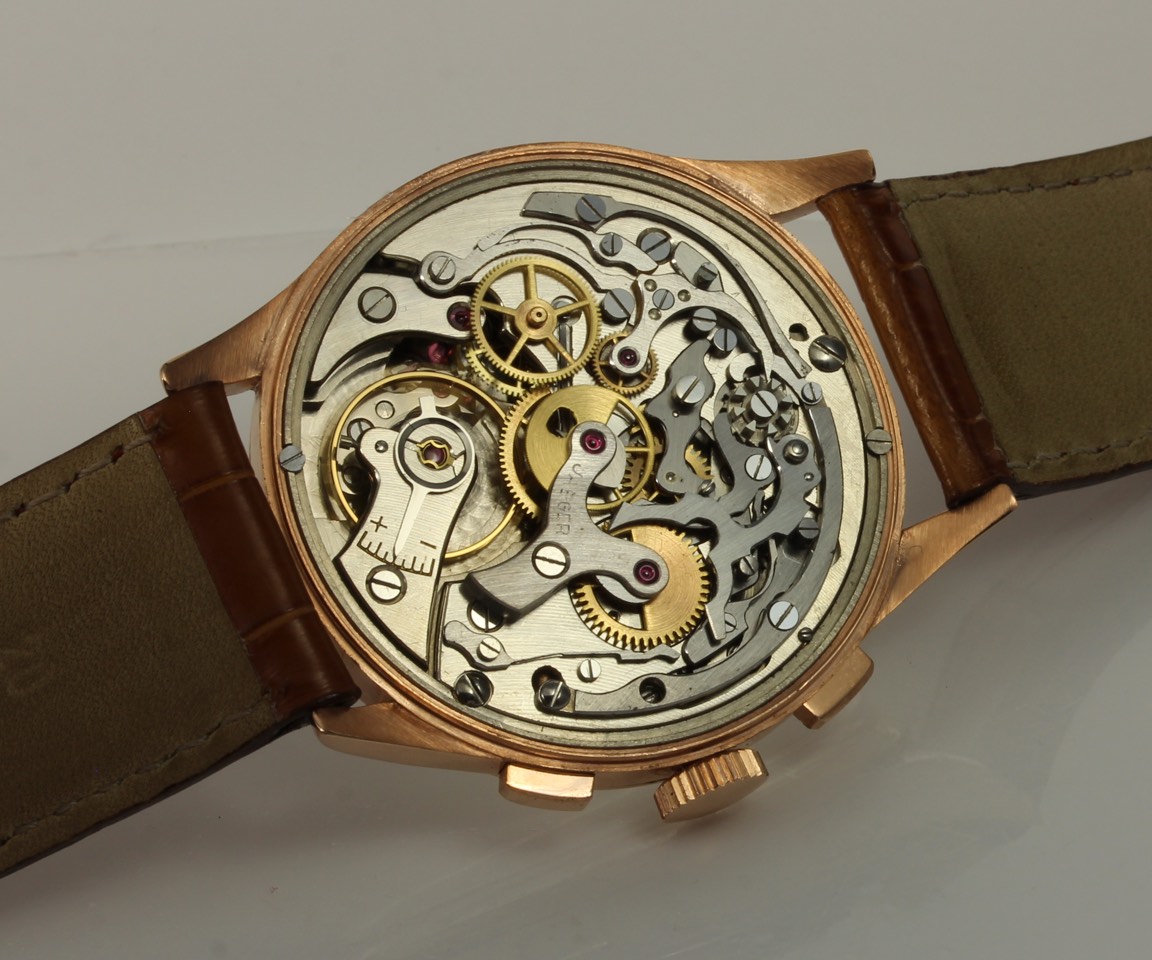 Listed as a 1955, which is important to me. Chronograph, 38mm diameter. Manufacture movement column wheel caliber 285.