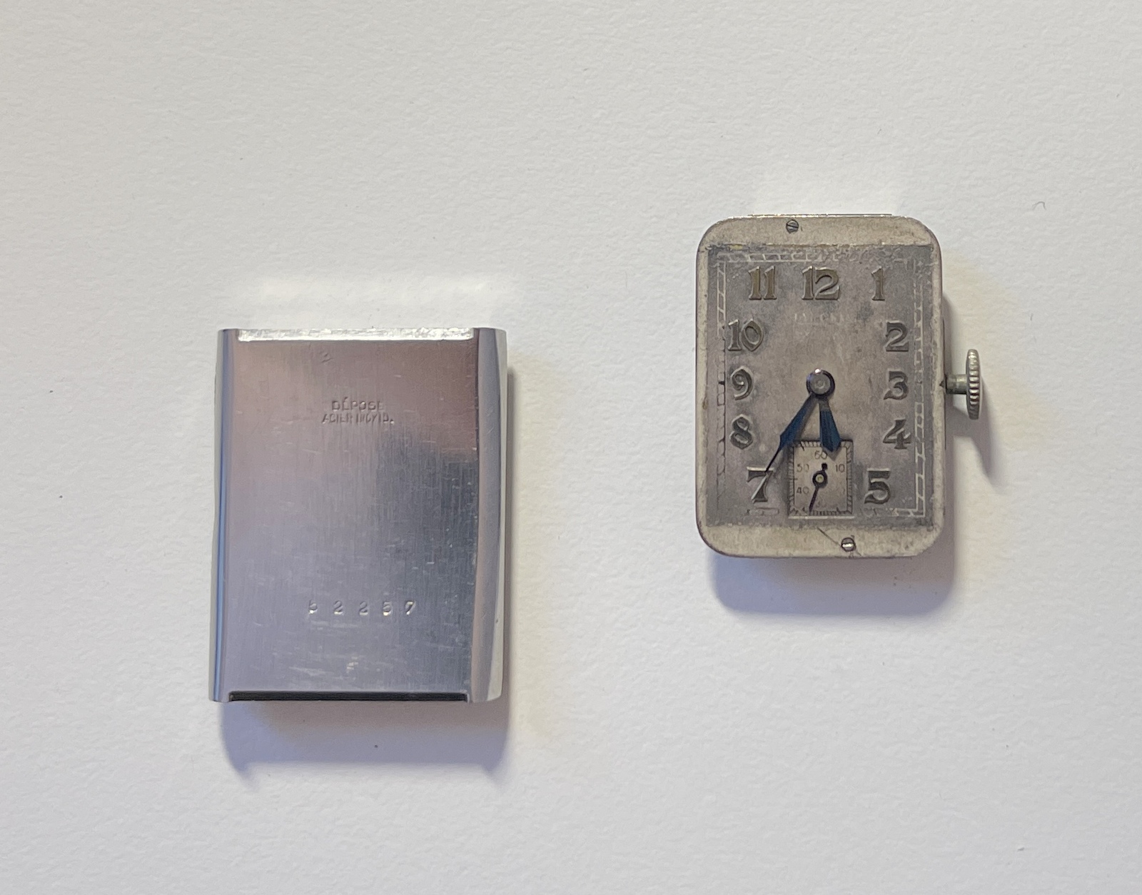 This is a pre JL Uniplan (with Reverso shaped case) marked Jaeger on Dial (tarnished), Lecoultre on the case back (very unusual) and Lecoultre on the caliber (which one is it? there seems to be some inconsistency on this in the net: 411, 413, 438 ??)
