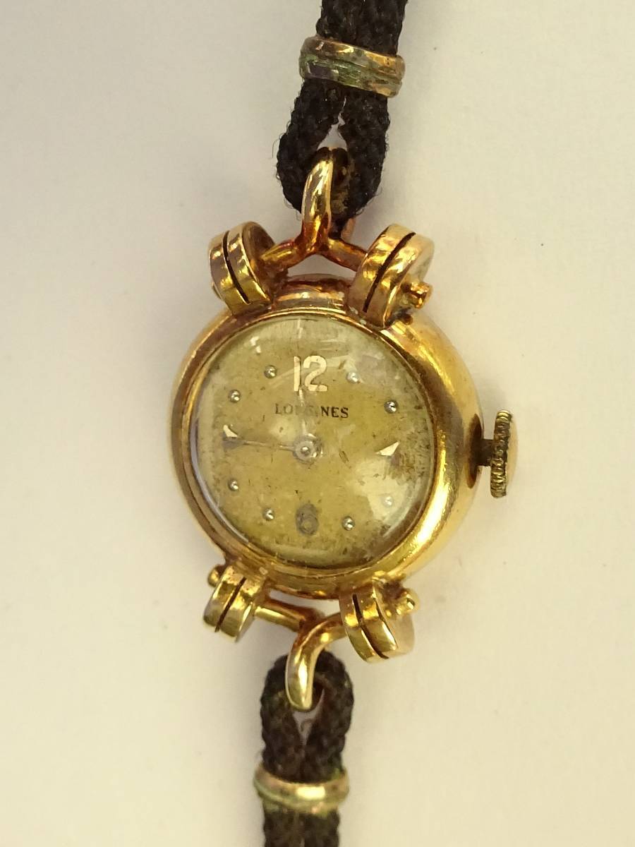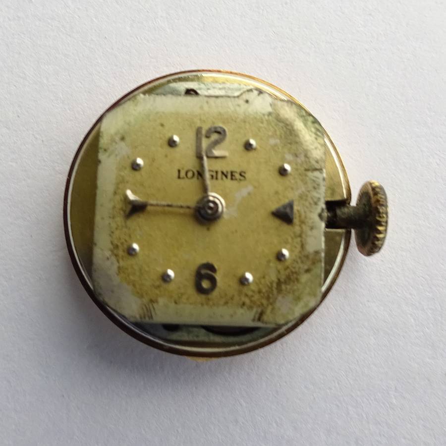 The 13mm x 15mm 17 jewel movement (not working) is a 1952 Longines (8887924), though I'm not sure it is original, as the dial face is square. I've requested history on it from Longines.