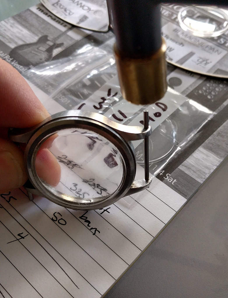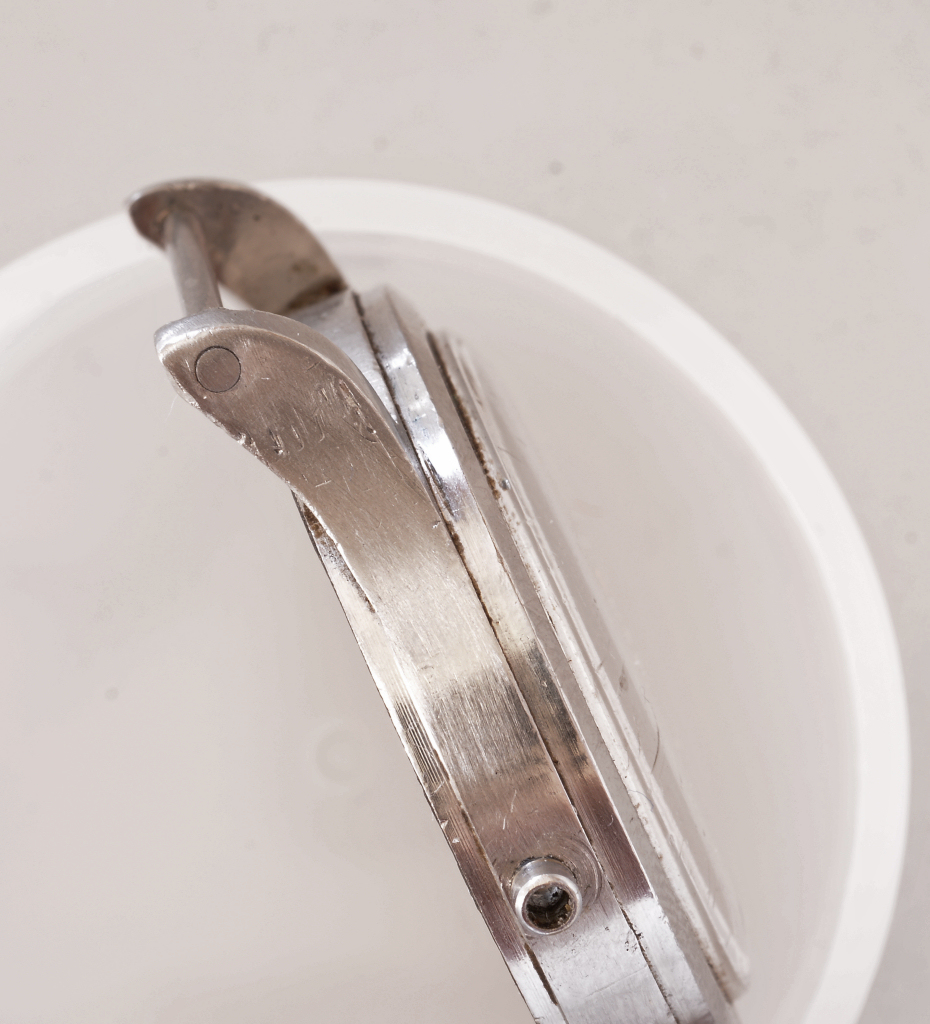 The watch had it's fixed bars drilled out, the wrong crown, a totally beat up crystal and is running sluggishly.