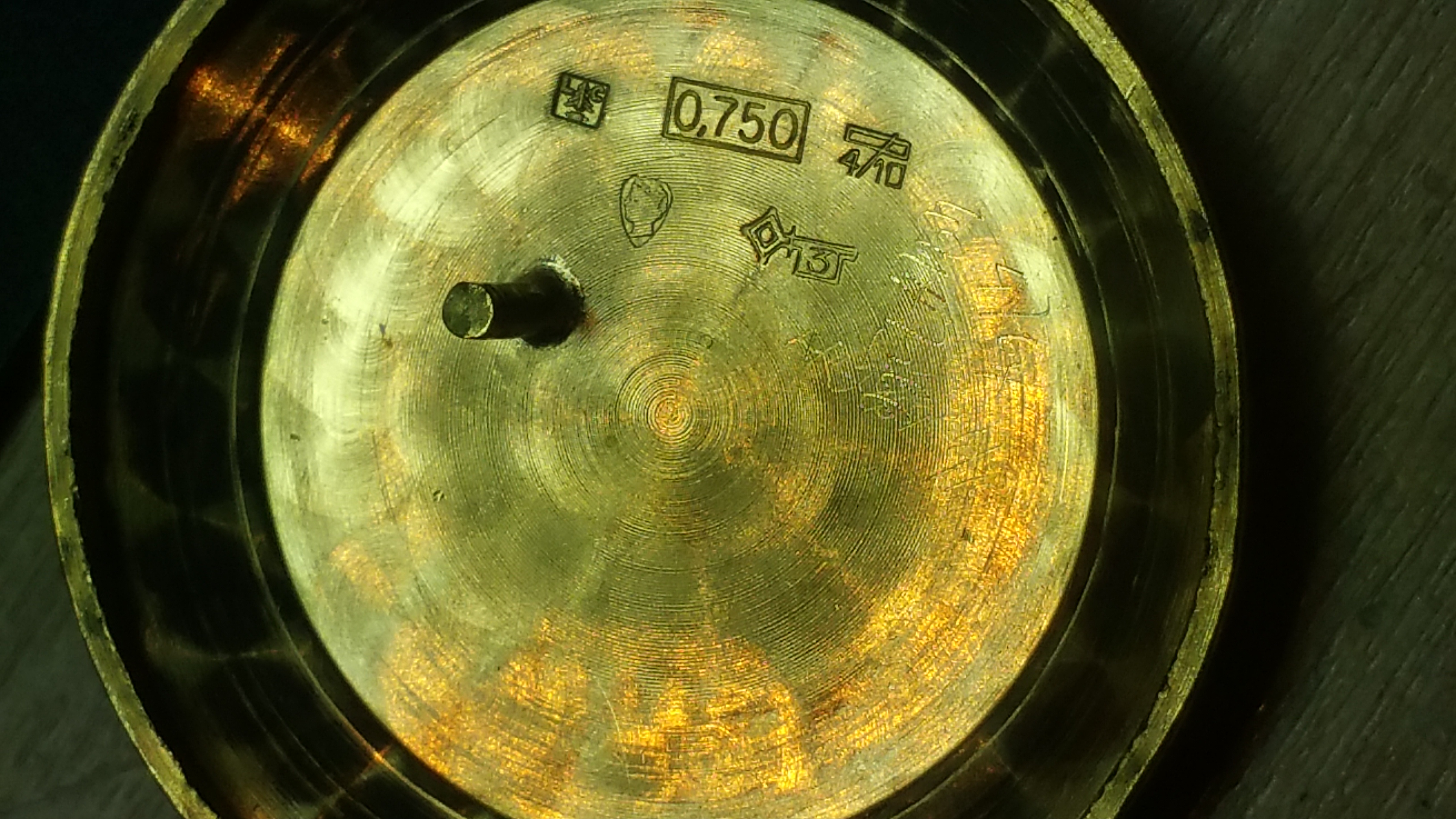 OK, the key here is how the bracelet is marked. Does it have the JL logo and Swiss hallmarks? Is it stamped 18k, if so, how, etc. So focus on the bracelet and that will answer your question.