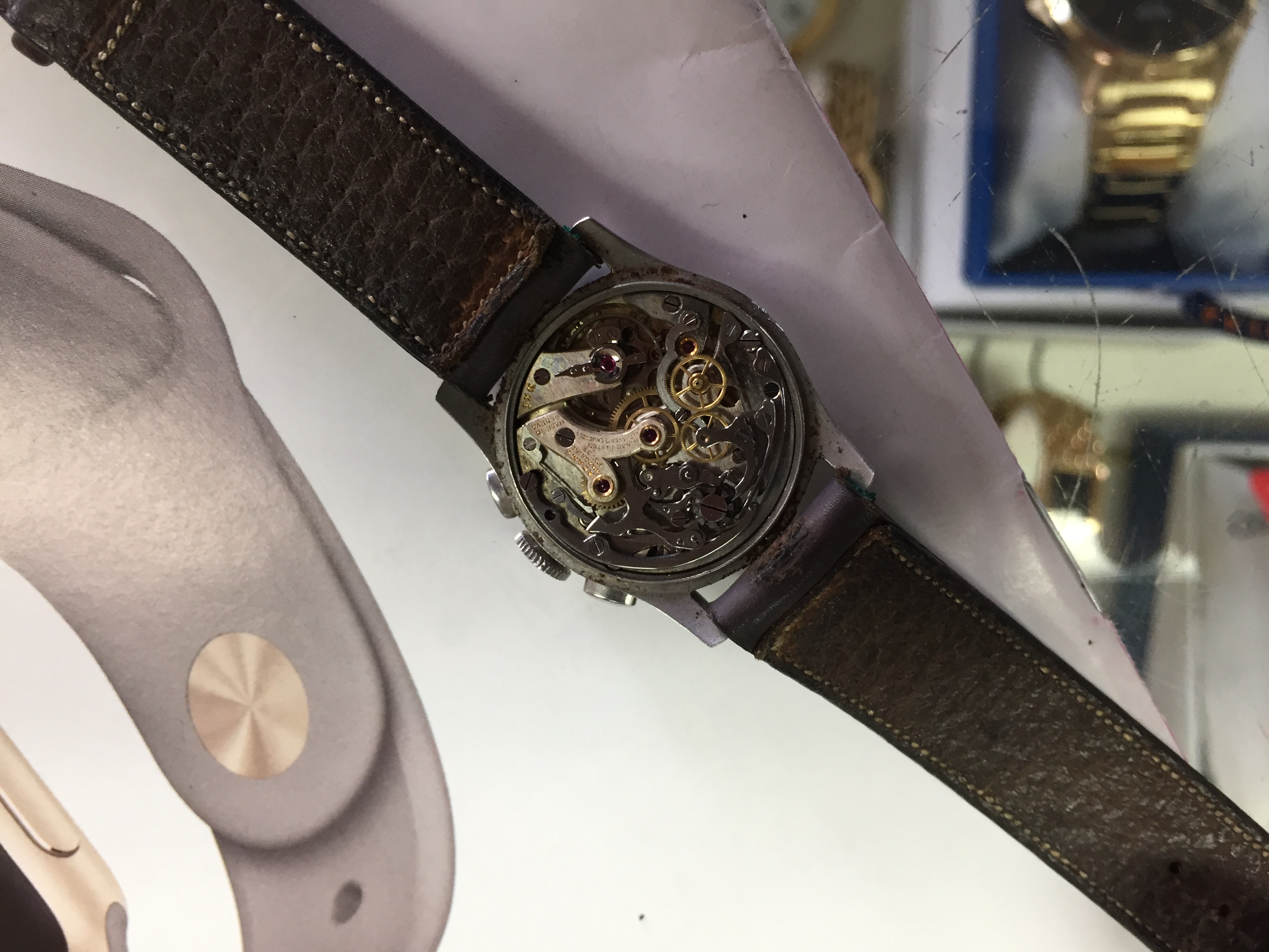 Please help me learn about a watch I just inherited. It is a tiny chronograph (28mm including stem) wristwatch. The case is stainless steel. The face is gold with no mention of mfg. stamped inside the case Made in Geneva,Adams watch inc. and some other words I can’t make out. The movement works and the exterior is in excellent condition.