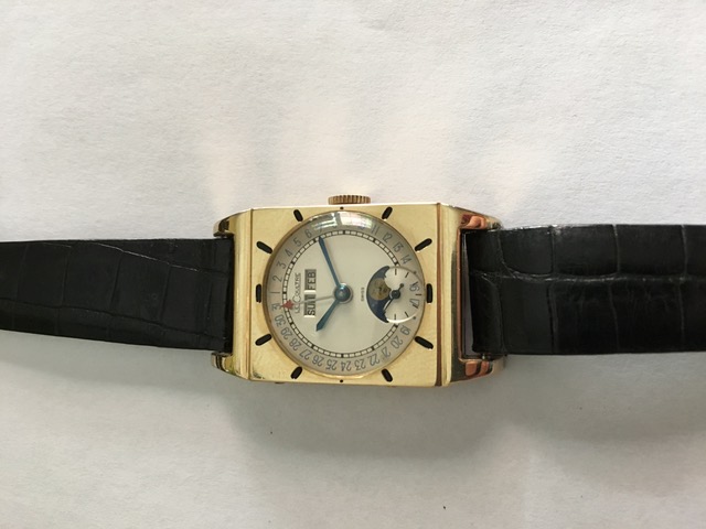 Have had this Rectangular gold-filled model many years. Has the original Strap, Buckle and Box with instructions. No case wear.
