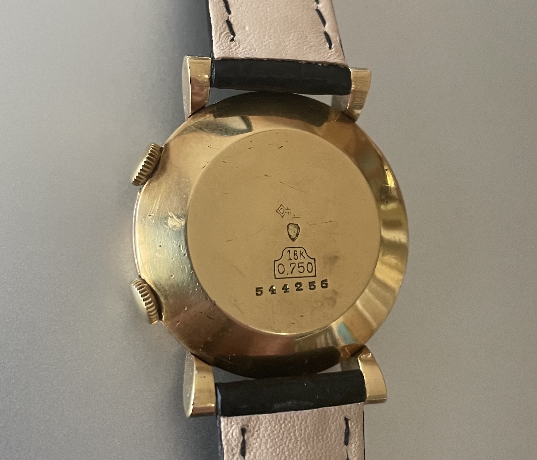 Generally, these watch cases were made in the US and are gold-filled or 14K gold. There are some US made cases with 18K gold, but you don't see them very often. The movement likely will also be engraved "LeCoultre".
