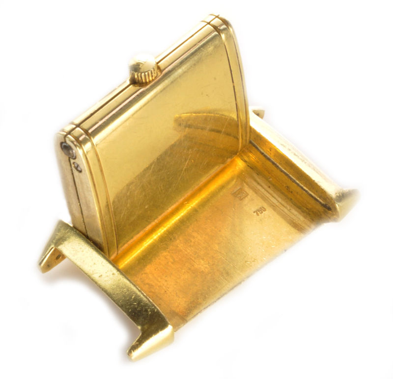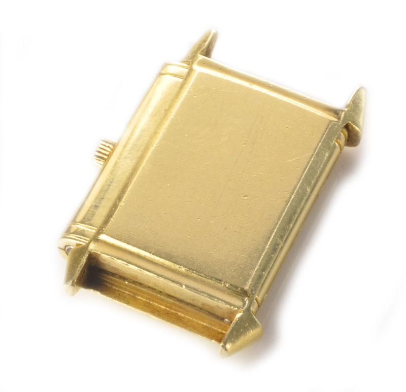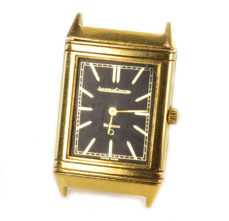 "This is a men's rare Vintage 18k Jaeger LeCoultre Reverso wristwatch. This watch is a highly collectible 1950's 18K yellow gold rectangular cased reverso model by Jaeger LeCoultre Watch Co. It features a three piece case with can be spun around to cover the watch dial for protection stamped on the inside back cover L C makers mark .750 and on the watch body as well. The crown is embossed with the Jaeger LeCoultre mark.