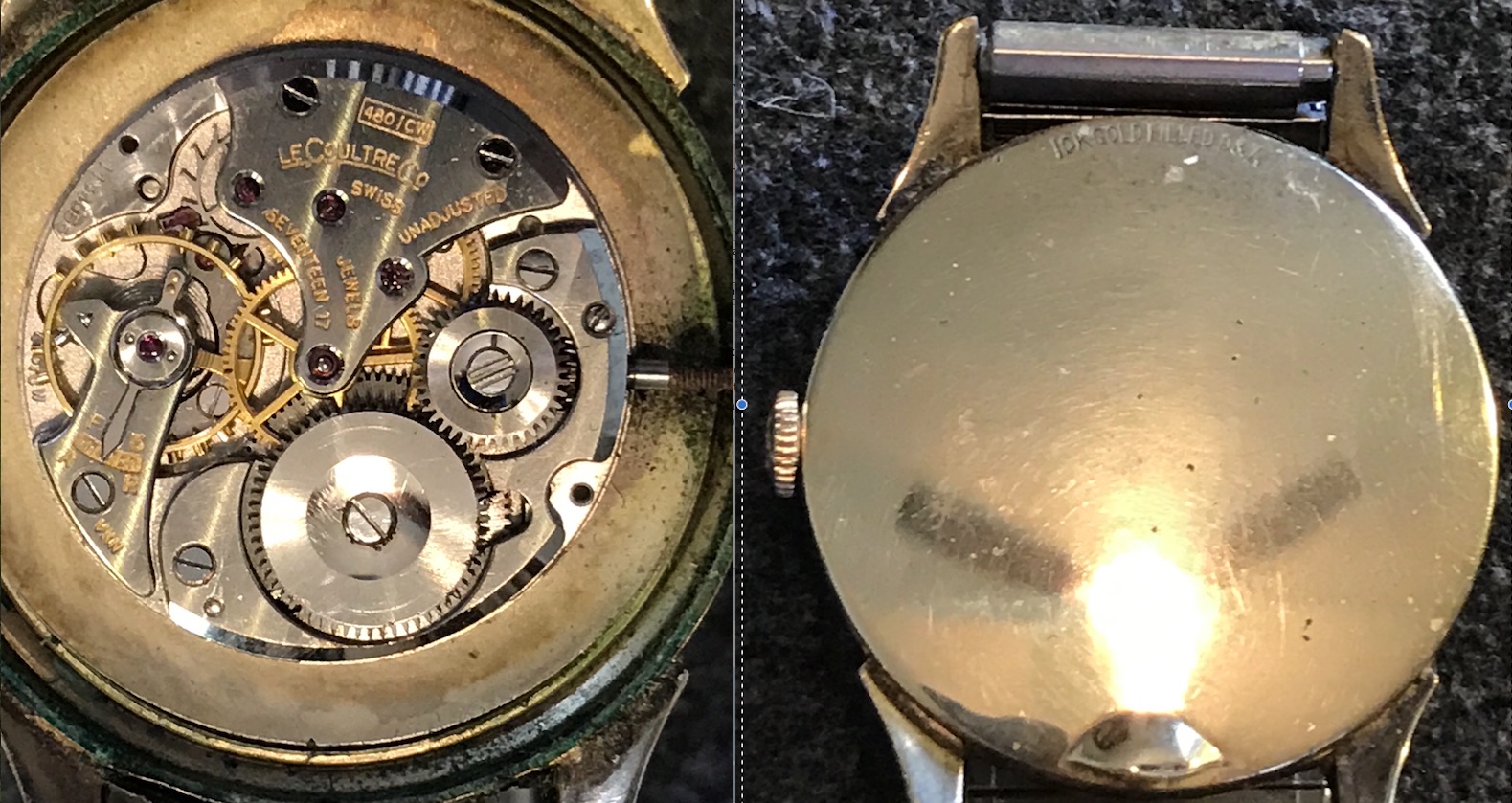 I recently inherited this watch from my father (who was 90), which may have also belonged to his father. I am simply trying to find out a little more about it, such as authenticity, age, etc. I've done extensive Google searches and have read all about various case and serial numbers, but none on this watch seem to match any of those patterns or formats. So I'm particularly wondering if this is authentic or not, or maybe just too old to be shown in some of those databases. I'm particularly intrigued by what appears to be two handmade etchings on the inside of the case. One is "W98xi" and the other "S9-N9". Hard to see these in the picture but one is at 10:00 and the other 1:00 (inside of back cover where the other numbers are). If this is authentic, I've seen no reference to similar etchings on LeCoultre watches. Also, can the glass cover be ground to make it less scratched up?