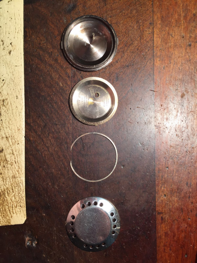 Case back clean up has begun. It had to be completely taken apart to get it clean. Note, more pieces are involved than meets the eye!