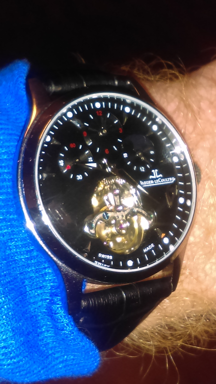 The second hand moves like a JLC hand does, the weight is heavy and real, it only works and spins up when it's on me or recently taken off, every detail is flawless, has the JLC specific numbered serial code, and has all the markings of a JLC not to mention the materials it's made with are not by any means average or anywhere near average. So start over if you're going to say it's fake, and give a very detailed description as to why. The pictures honestly are terrible and don't do it justice, but for now it's in the shop until I can retrieve it after work one day.