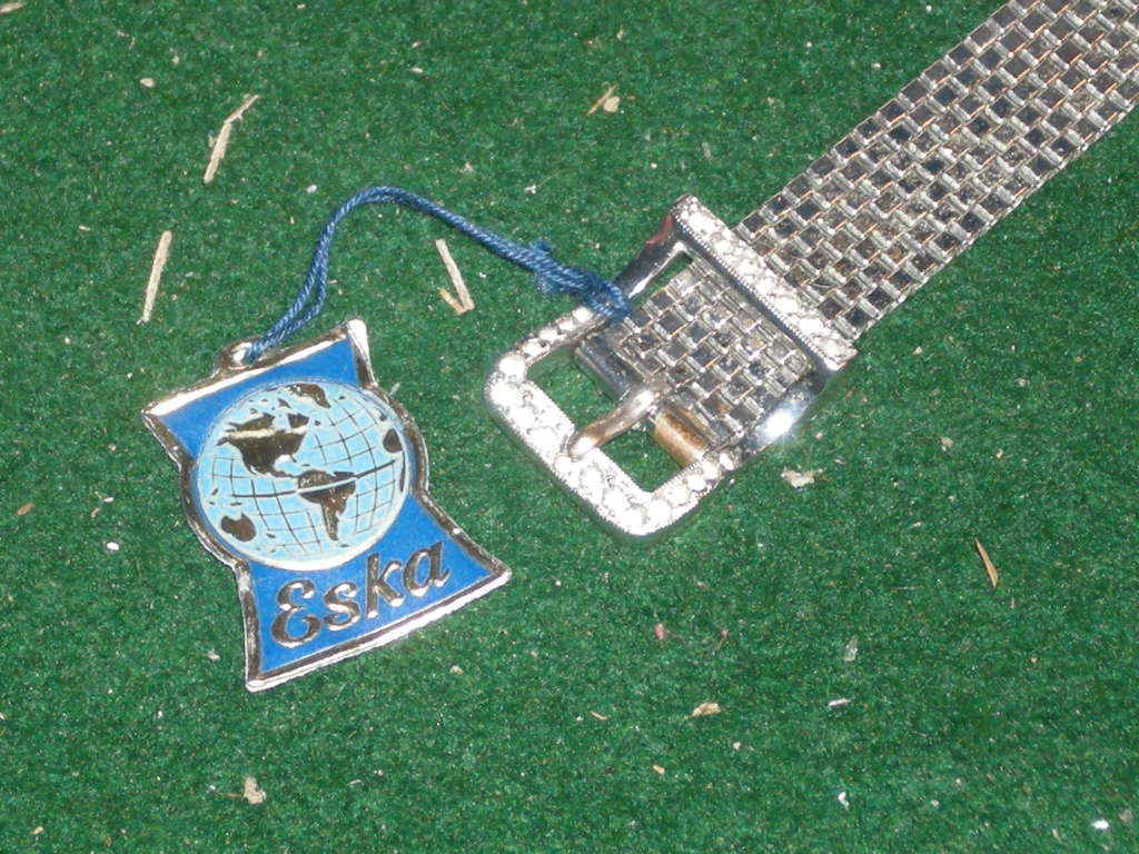 Below are some photos of a vintage Eska watch I recently acquired. I have had it serviced and it's running well. It came with the tag attached and is apparently "new old stock". I'm interested in knowing when it was made (approximate) and a value (approximate) for it. The jeweler who serviced it thinks it's from the 20's or 30's based on the curved crystal and style. I believe the case and band are stainless with rhinestones around the face and on the buckle, a few of them are dark because the foil back has deteriorated but they are all there. There are no marks on the case or the back.